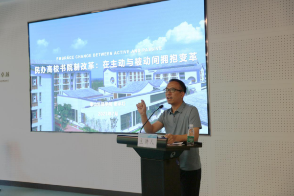 谢校长指出,民办高校的书院制改革要始终服务于所在大学的愿景、使命和价值观,并从办学落脚点、人才培养目标、管理服务体系、育人评价方式、思政教育和服务引领等角度讨论了书院制改革对大学办学治校、人才培养的重塑过程,讨论了当前高校书院制改革中面临的共性问题和价值取舍。